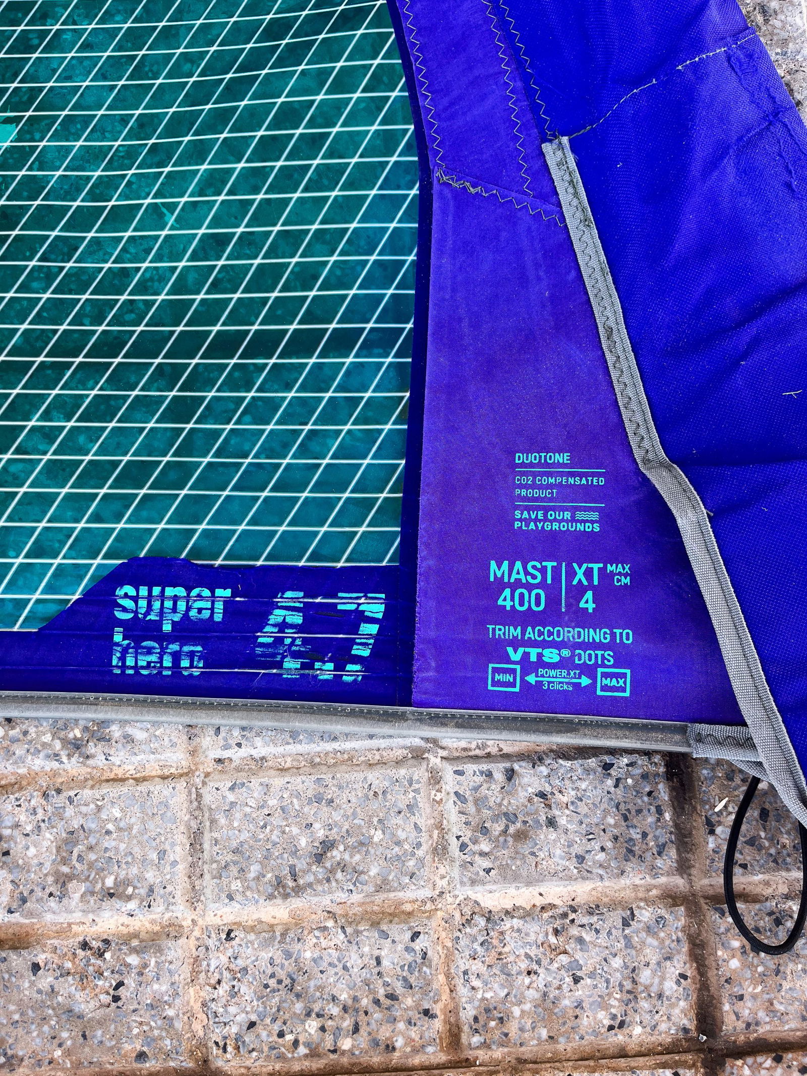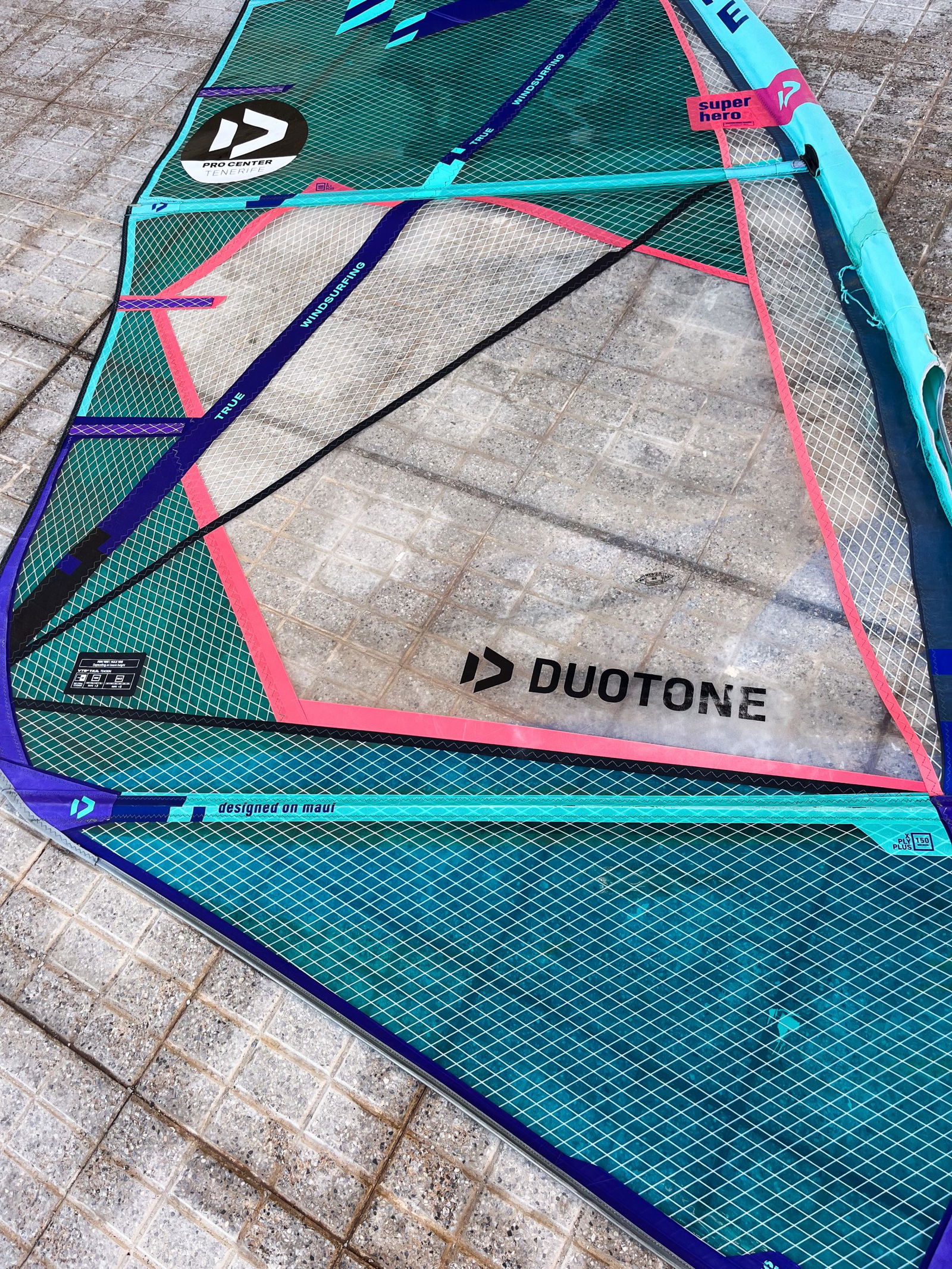 The Duotone Super Hero 4.7 2025 is a high-performance, wave-oriented windsurfsail designed to deliver smooth power, excellent control, and responsiveness in challenging wind and wave conditions. The sail is in good condition and shows normal signs of use.