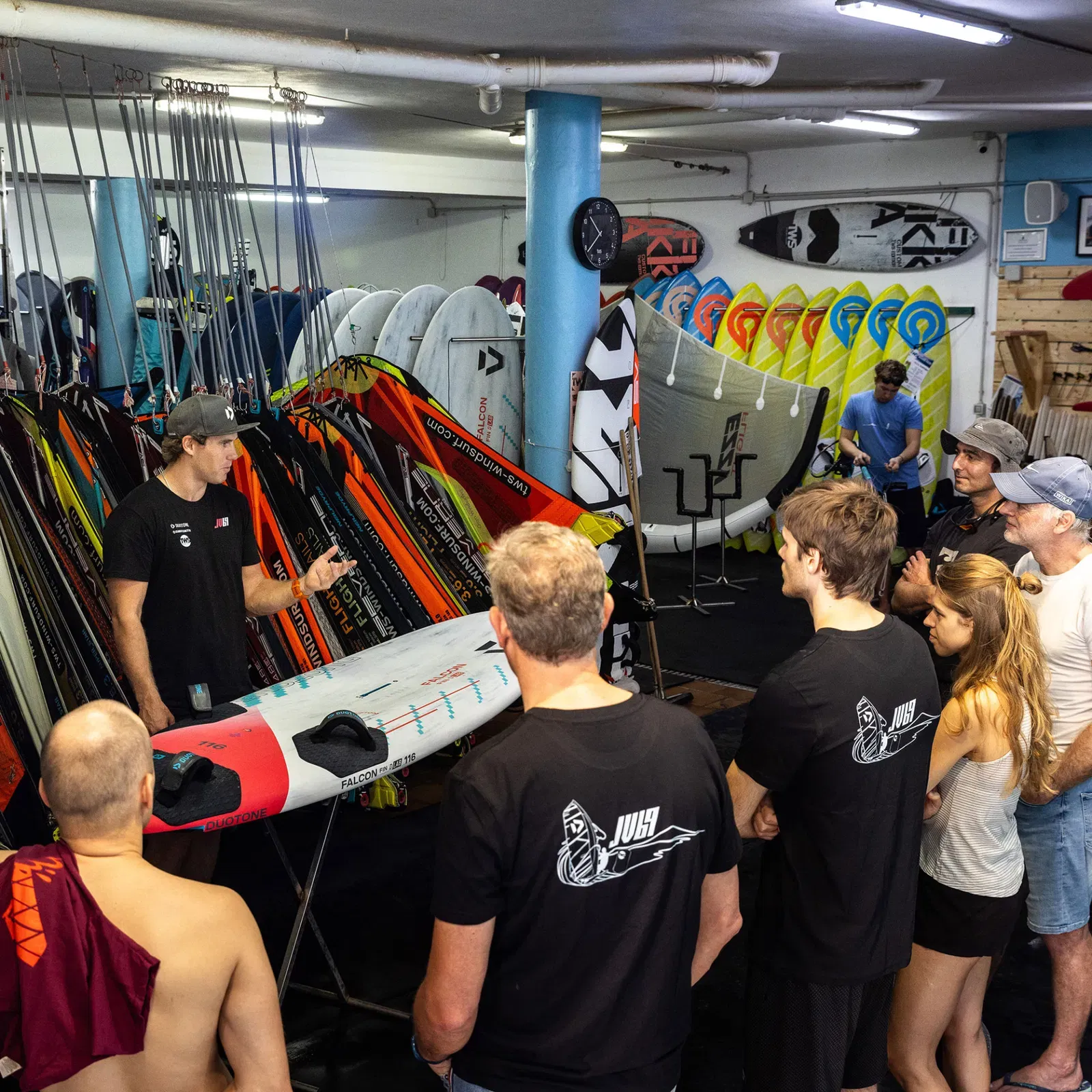 Nous proposons des stages adaptés au wave riding, au freeride, au freerace et au slalom. Notre coaching VIP est un programme personnalisé conçu pour vous aider à maîtriser les techniques et les mouvements que vous visez.