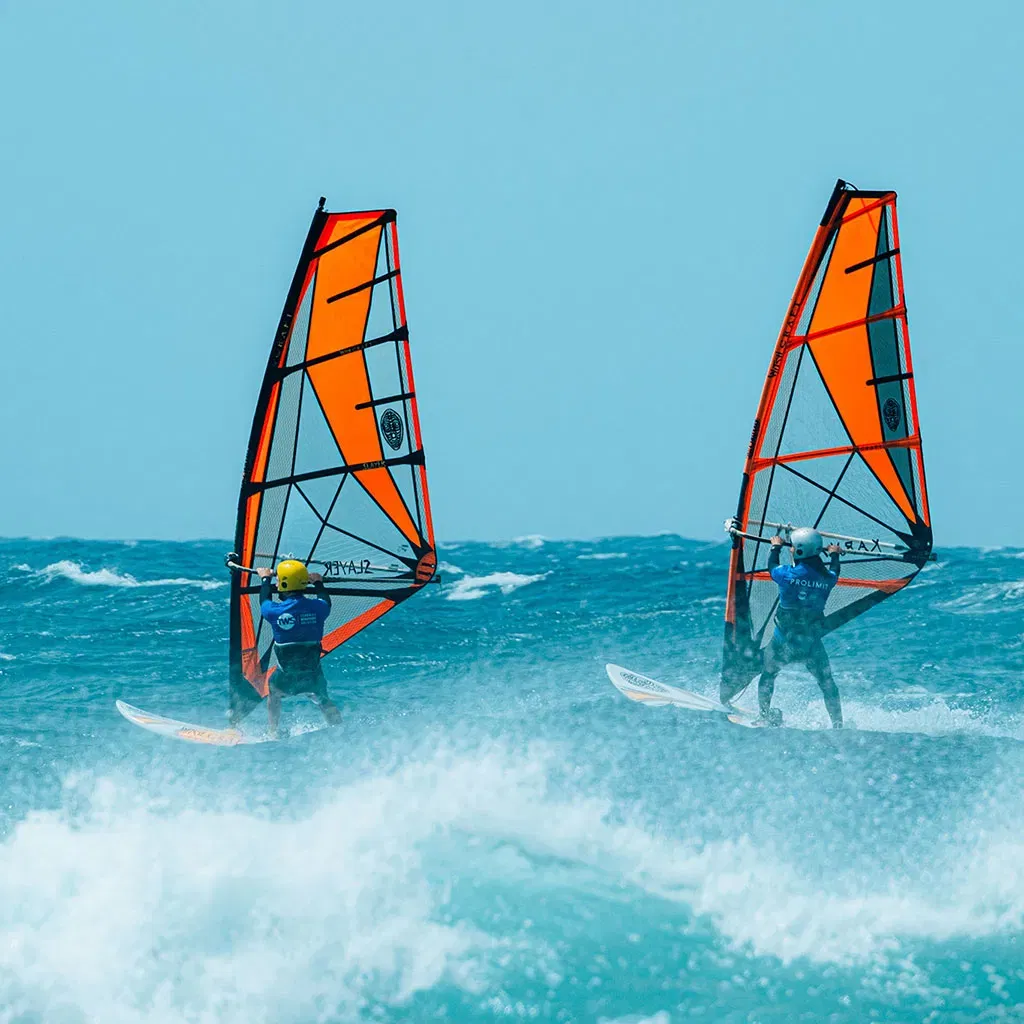 When traveling with a group and windsurfing or wingfoiling gear, it’s important to plan ahead. Whether you’re flying or taking a ferry, make sure to confirm with airlines or transfer services that they can accommodate the extra gear.