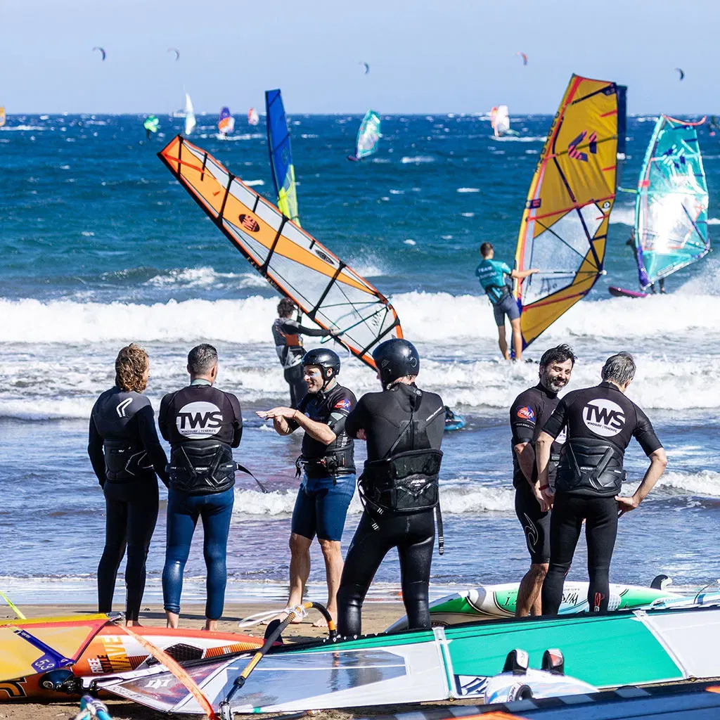 Book your windsurfing experience today and discover the thrill of riding the waves in El Médano. And get your free TWS t-shirt on each booking!