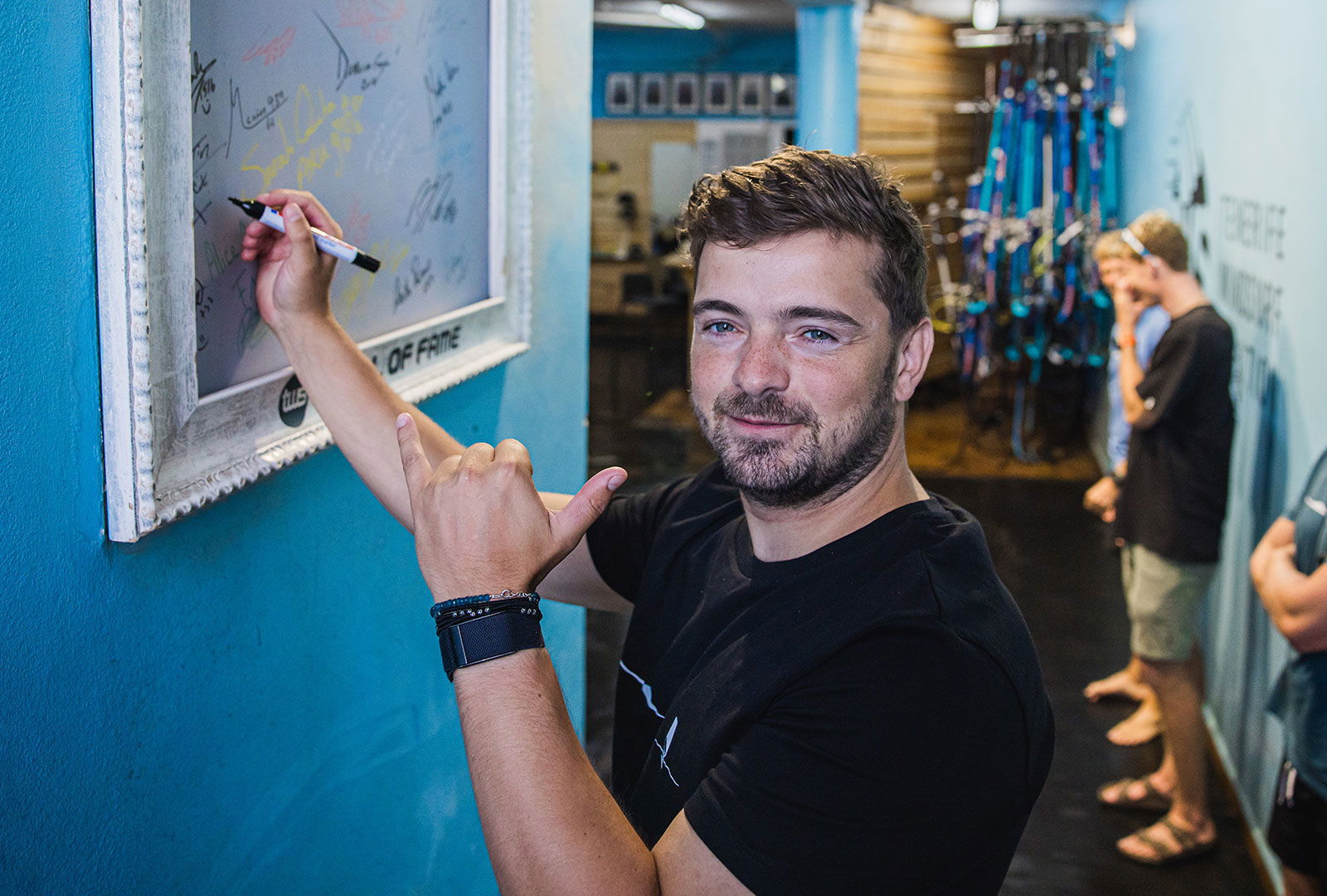 Kliniki Slalomu Popraw swoje umiejętności w slalomie z płetwami dzięki wiedzy 26-krotnego mistrza świata w slalomie, Antoine’a Albeau. Nie przegap