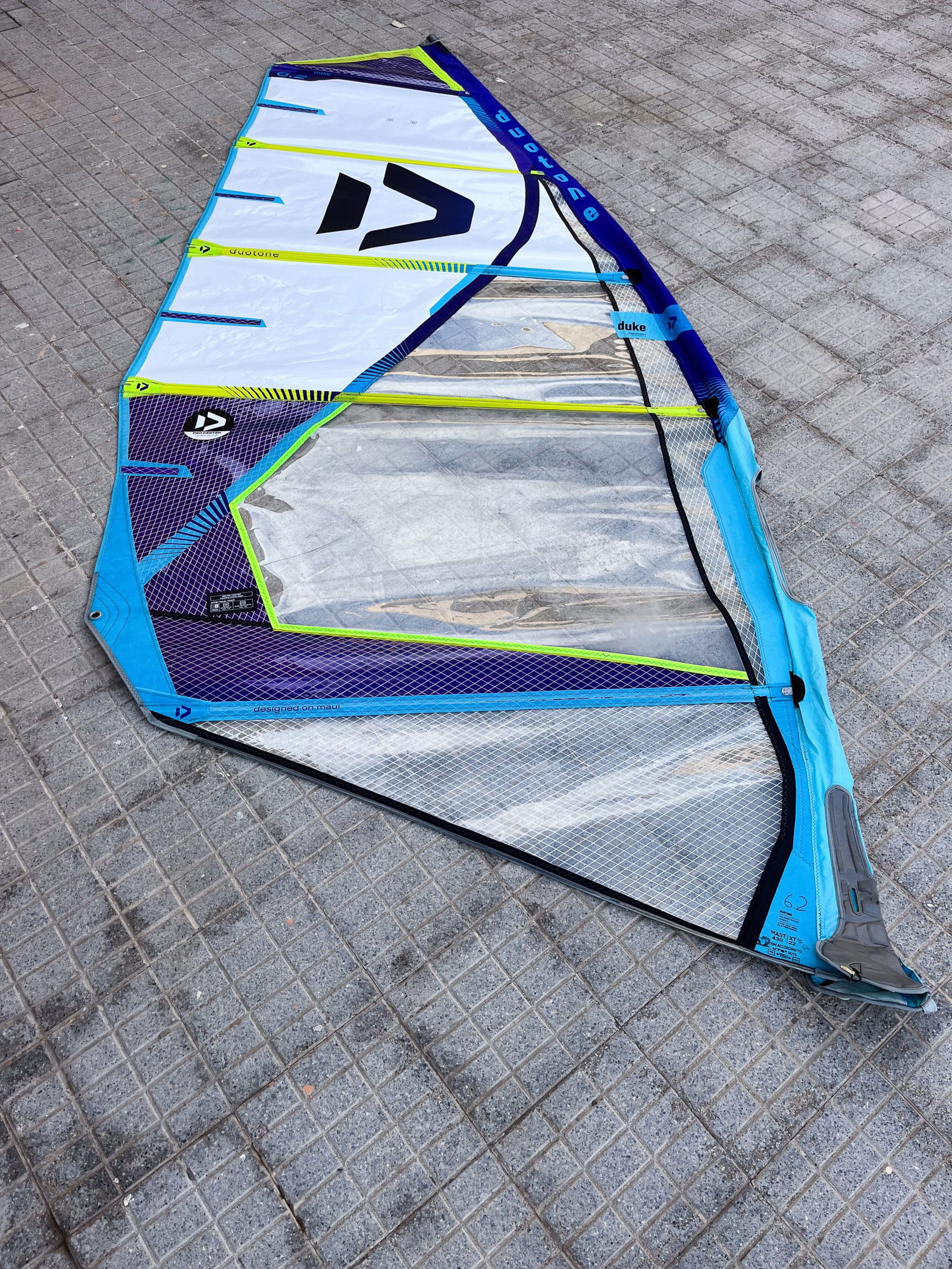 The sail is in good condition and shows normal signs of use. The lower panel has been professionally repaired. Can be shipped to any address within the EU-zone or picked up in El Medano. Check also the other sizes we have available.