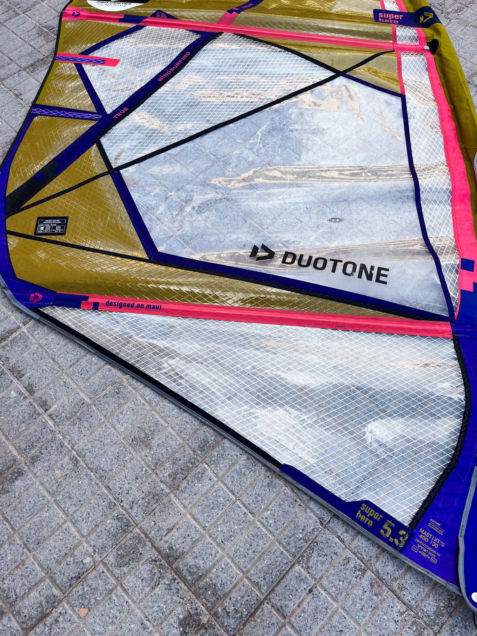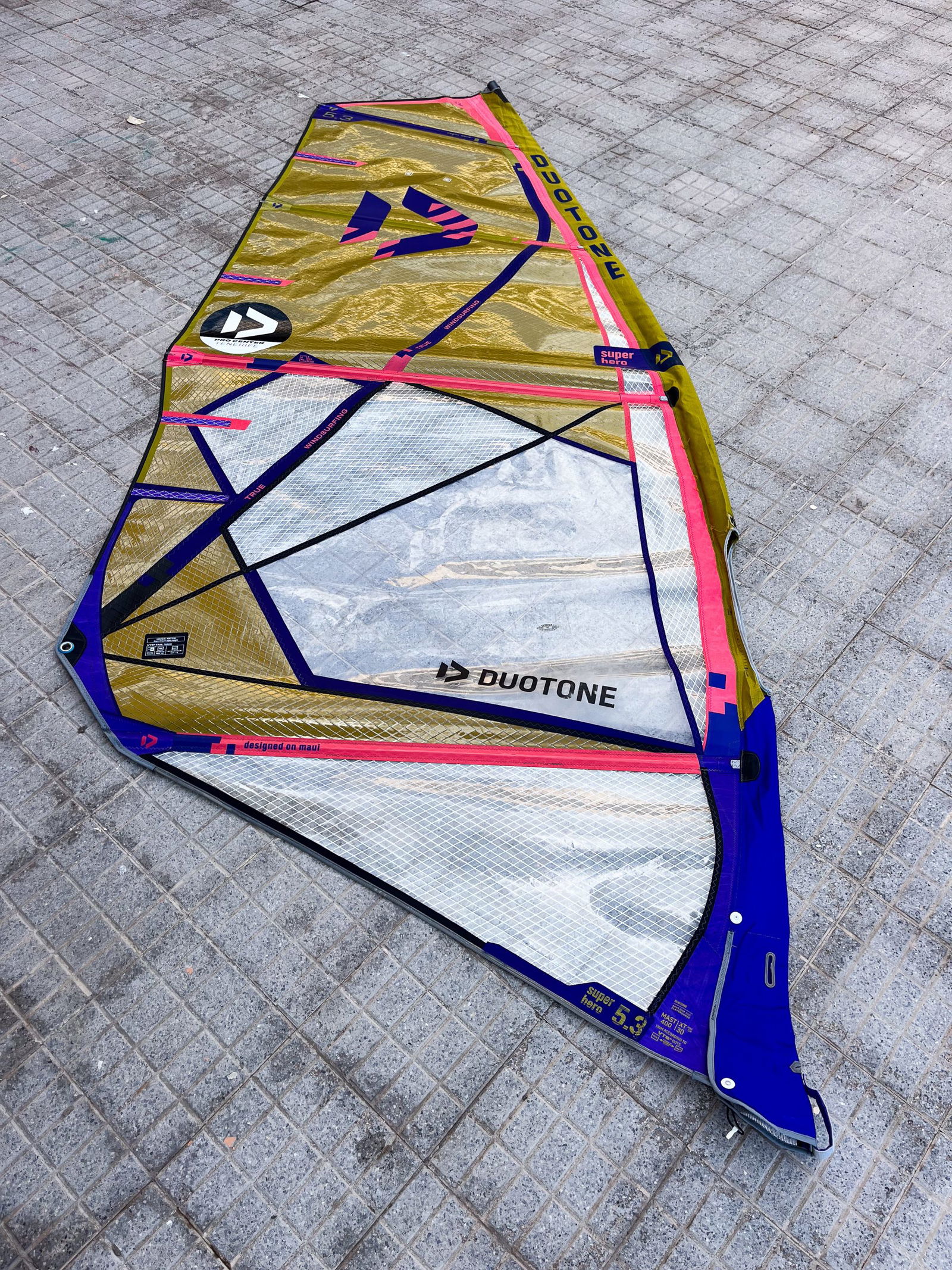The sail is in good condition and shows normal signs of use. The lower panel has been professionally repaired. Can be shipped to any address within the EU-zone or picked up in El Medano. Check also the other sizes we have available.