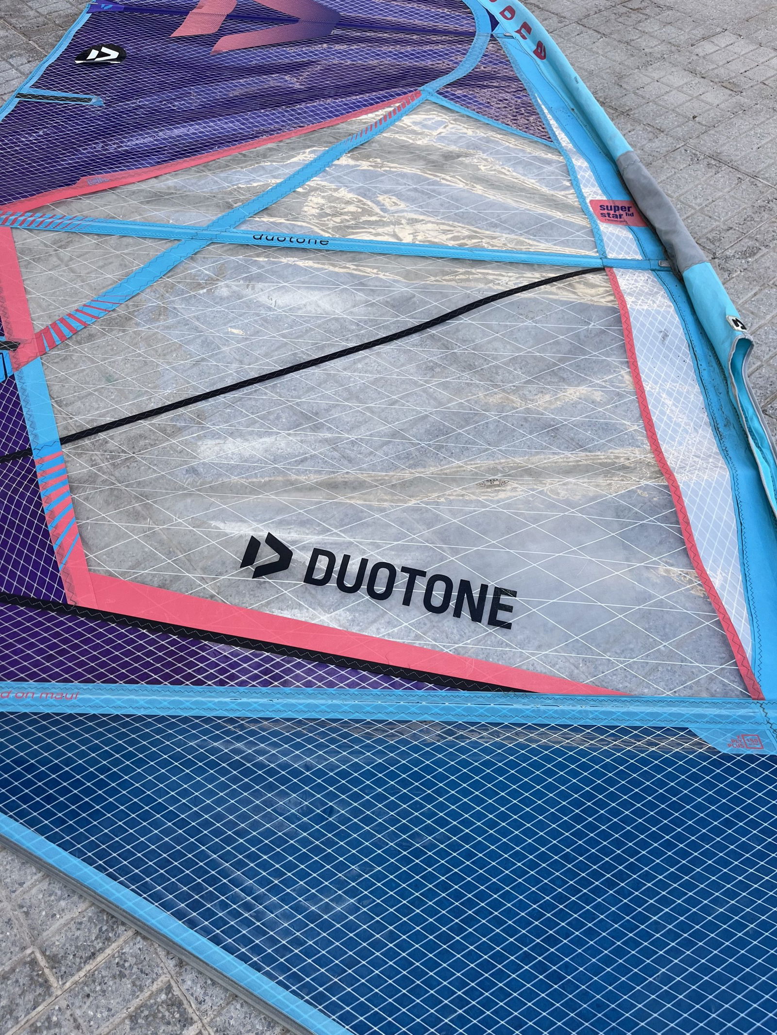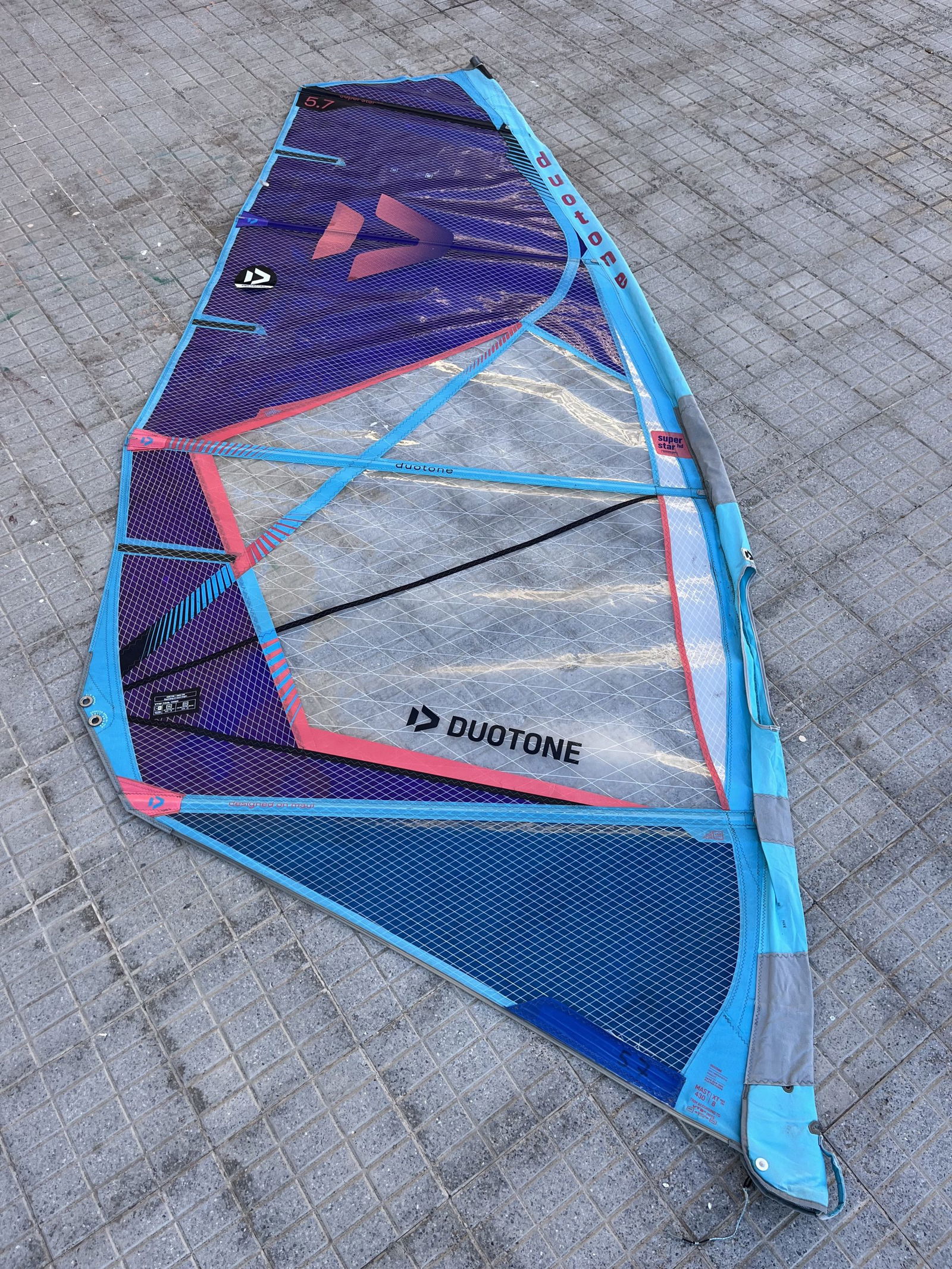 The Duotone Super Star 5.7 2024 is a high-performance, wave-oriented windsurfsail designed to deliver smooth power, excellent control, and responsive handling in challenging wind and wave conditions. The sail is fully functional, with visible signs of use, but still sails well.