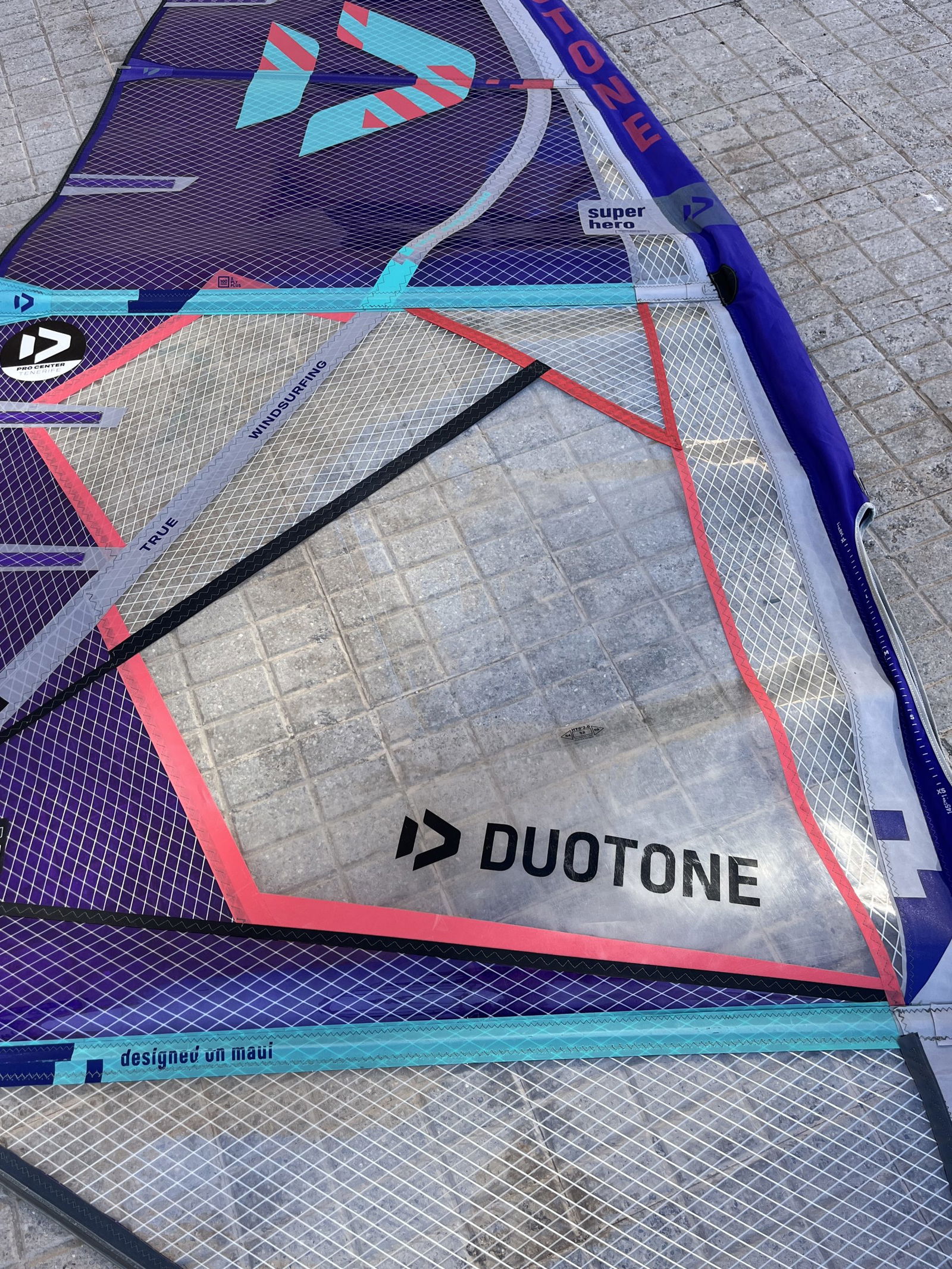 The Duotone Super Hero 4.0 2025 is a high-performance, wave-oriented windsurfsail designed to deliver smooth power, excellent control, and responsiveness in challenging wind and wave conditions. The sail is in good condition and shows normal signs of use. The lower panel has been professionally repaired. Can be shipped to any address within the EU-zone or picked up in El Medano. Check also the other sizes we have available.