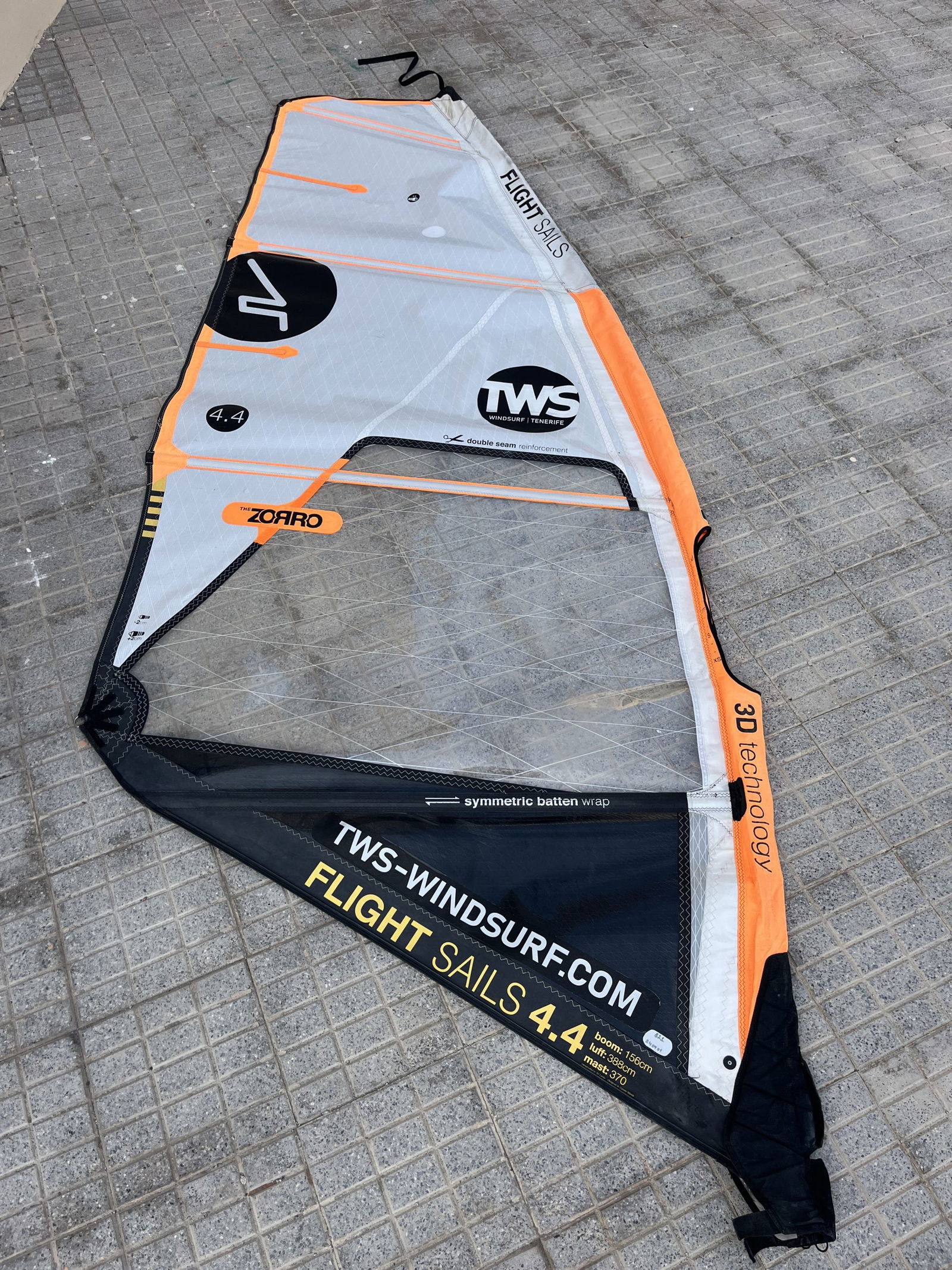 The Flight Zorro 4.4 2024 is a compact, wave-oriented windsurfsail designed to deliver maximum control and responsiveness in strong wind and challenging conditions. The sail is in good condition and shows normal signs of use.